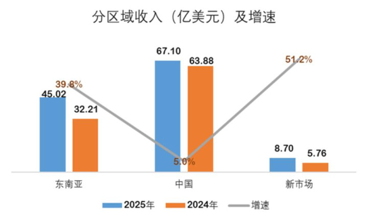 还有个遑急的财务信息相似值多礼贴,岂论是东南亚市集照旧新兴市集,毛利率都远高于境内,以东南亚市集为例,2025年毛利率高达19.66%,差未几是国内的3倍。
