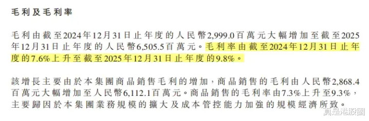 2025年,鸣鸣很忙的毛利率晋升至9.8%,较2024年的7.6%晋升了2.2%。