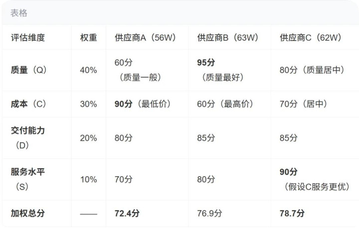 再说,C的报价并不不错豪阔跟A或B作念比拟。C是现存供应商,A和B王人还没资历进及格供应商名录,中间的审核要求好多、很高,频频经历审核后对方会升迁要价。