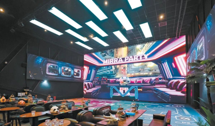 这个330闲居米的双层空间集电影、游戏、献艺、餐饮于一体,三面环绕的LED互动屏同一VR、动作捕捉、AI图像生成等时刻,让玩家在处所中的动作被及时投影在屏幕上。日间是千里浸式游戏场,晚上则归附不雅影功能,不雅众还可同期点餐享受好意思食。